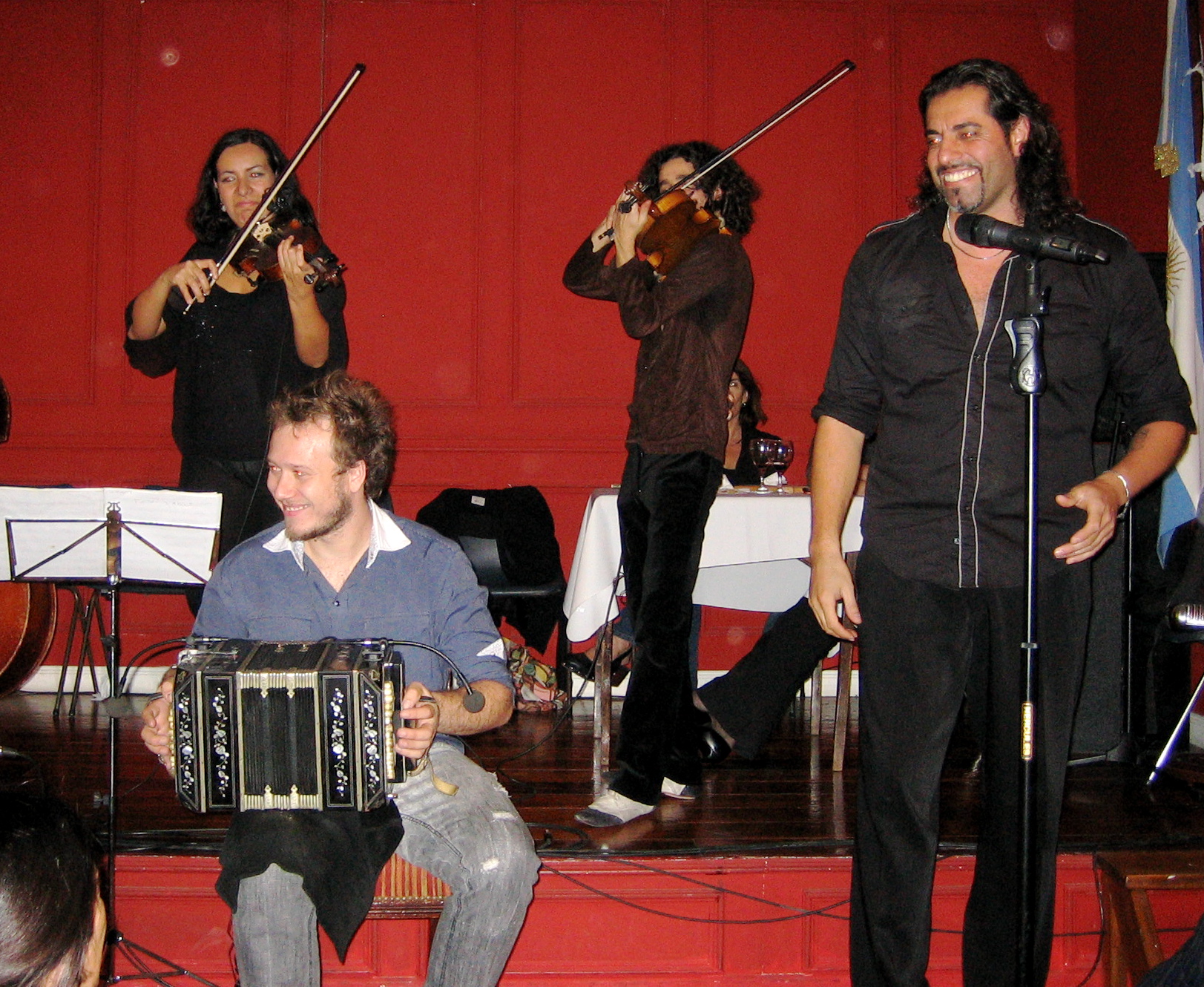 The other night we had the pleasure of listening to the high lonesome sound of SEXTETO MILONGUERO! These guys and gal can really throw down some dancing music! The celebration was the 6 month anniversary of a new milonga, La Coqueta de Recoleta. Here in Buenos Aires the milongas are usually packed, unless it’s early (before midnight) or late (after 4 am). But La Coqueta is quite danceable, the floor is excellent, table service very good, and the building is really and truly a Palace! Sexteto Milonguero plays a repertoire of tangos, milongas and valses arranged in the classic 1940s tango salon style. The group was formed in 2006 by singer Javier Di Ciriaco. Their music is high-energy, and made for dancing! Good music, good friends, good vibes!
