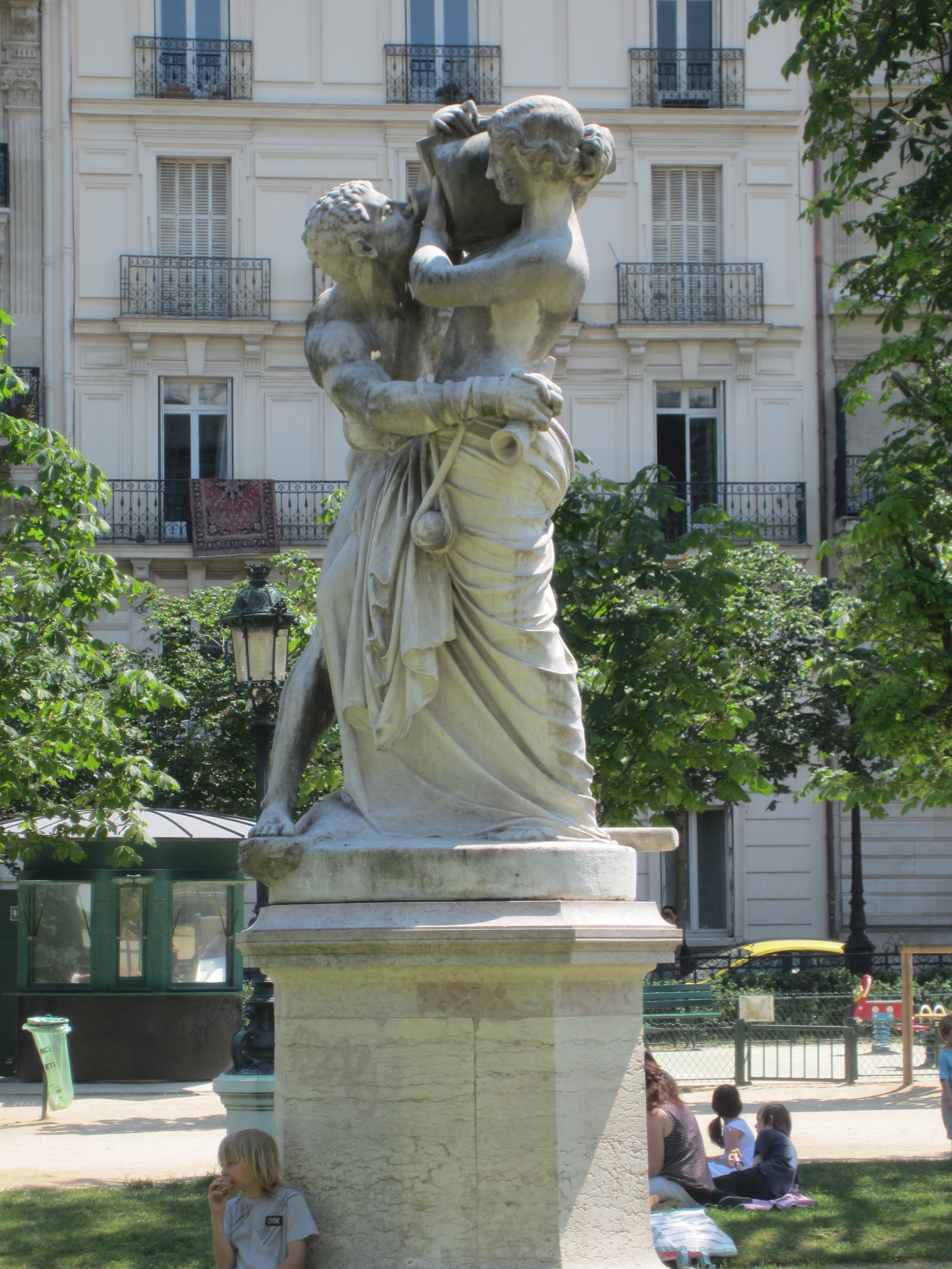 This beautiful fountain (Fontaine de l’Observatoire, 1874) reminds me of the Fontana di Trevi in Rome, which predates the Luxe Garden’s fountain by 112 years. The Romans tended to build fountains where their aqueducts converged. This fountain is a natural spot to meet up with someone, cause it’s so large you can’t miss it. Plus, it’s right at the south entrance to the Gardens.