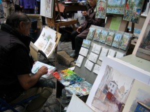finally arriving in the artsy tourist mecca, with its plaza packed full of artists sketching, painting, and displaying their works.