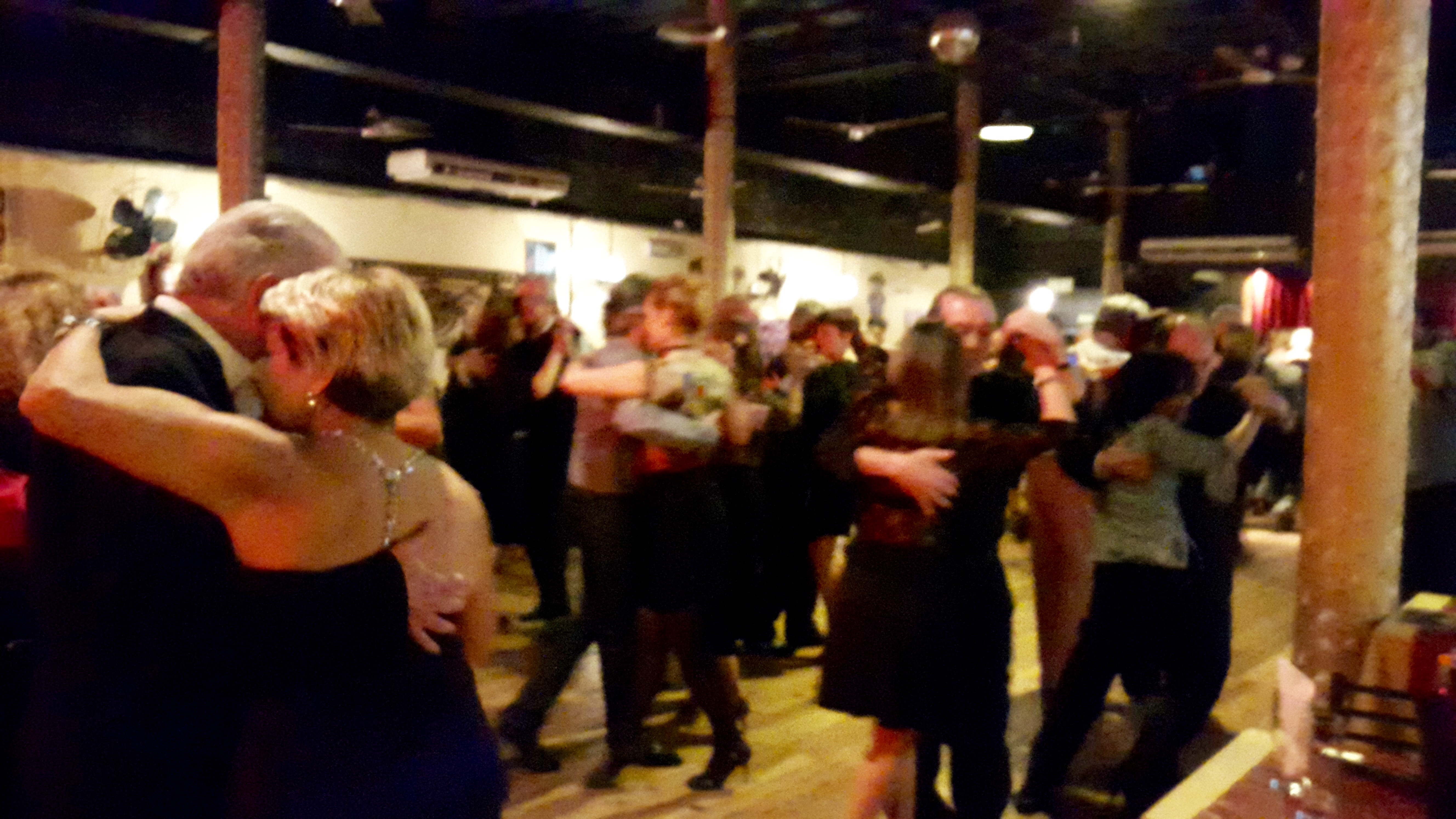 Like feeling the atmospheric tension of a storm before it breaks, when you are in the midst of a milonga your entire mind, body and spirit is bombarded by the energy of the room, the atmosphere, the presence of all the dancers, the musicians, the DJ…your friends and family! The people you know and the ones you don’t know yet. And if you have a glass of vino tinto or champagne, you’ve tuned down your personal tension level just a notch which allows the energy to flow through you instead of bouncing off you (which is what happens if you’re stressed). And, to circle back to an earlier thought, when you’re feeling connected to your tanguero family all around you, you will soon be dancing.