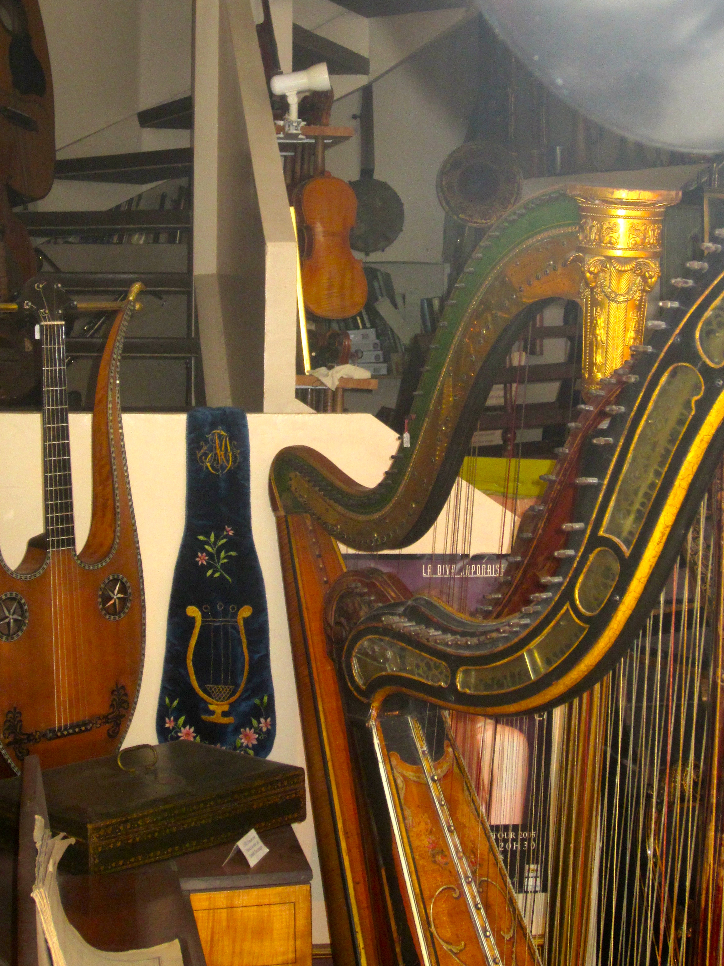 Paris reverberates with music and musicians… every summer they have la Fête du la Musique, a big music festival, with free music all over the city, from small neighborhood cafés and clubs to giant concert halls and expo centers. We stumbled on this antique instrument shop one day as we were strolling around aimlessly… one of the best ways to see Paris.